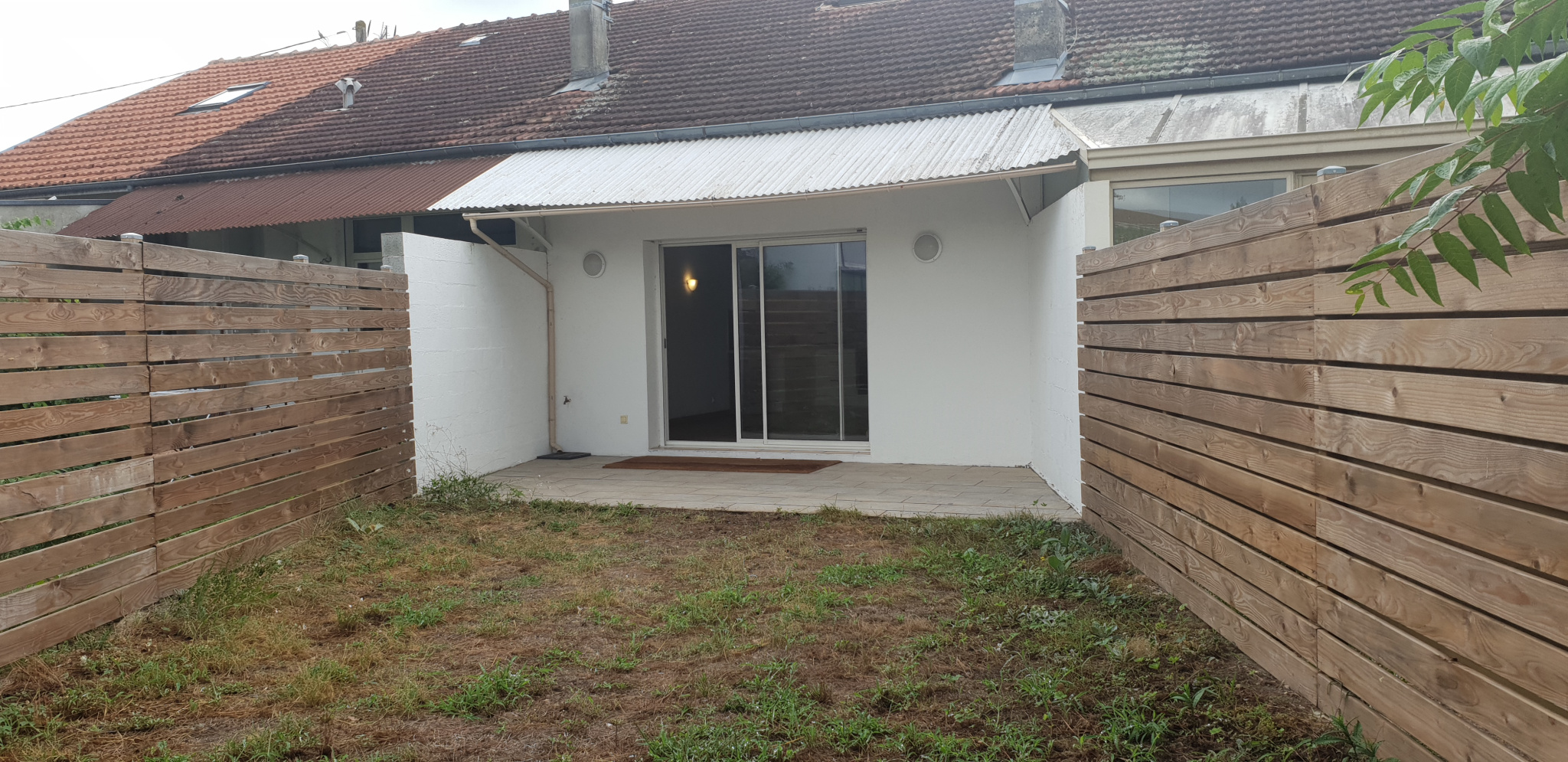 Jardin clos avec petites dépendances et passage pour vélo ou moto.