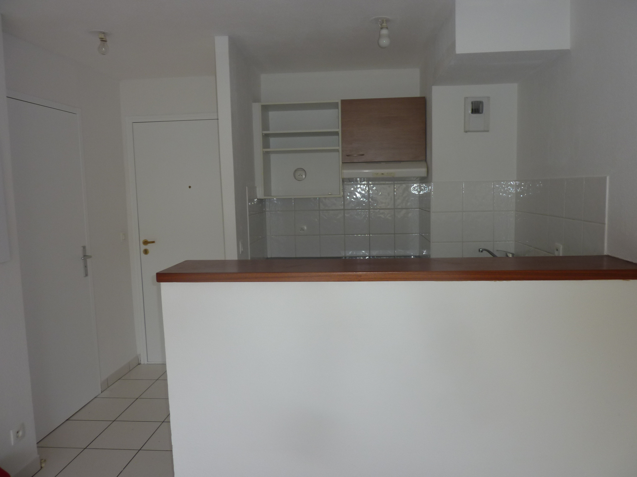 Cuisine aménagée et équipée ouverte sur le séjour, petit balcon, wc