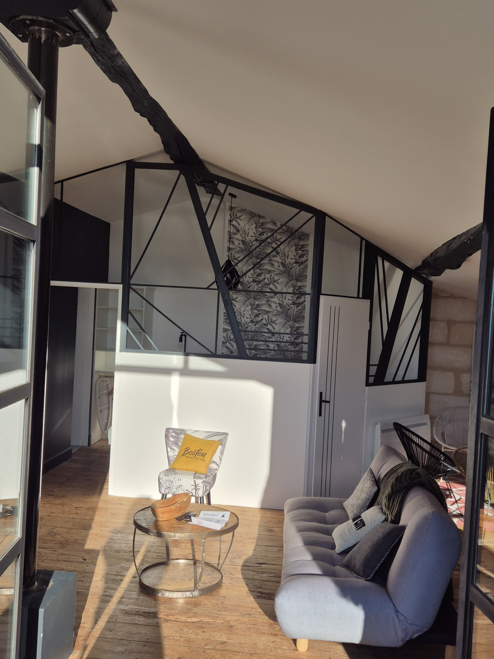 Libourne (33500)A proximité des quais de Libourne, superbe loft de 68 m2 dans un très bel immeuble de pierres, comprenant une cuisine aménagée et équipée ouvrant sur un salon et une chambre. Salle d'eau et wc séparé.